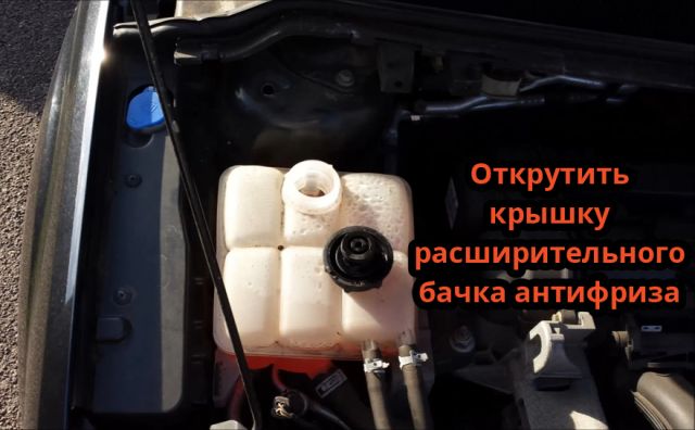 ОЖ будет вытекать быстрее, если снова открутить крышку расширительного бачка.