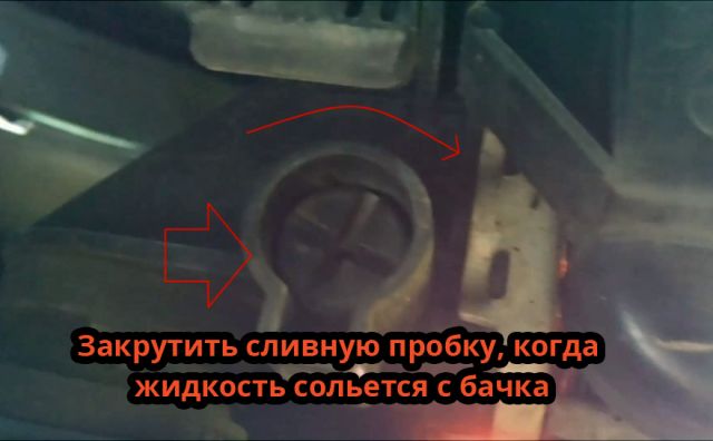 Когда антифриз прекратит вытекать, можно закрутить пробку обратно.
