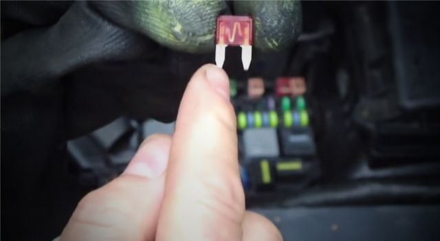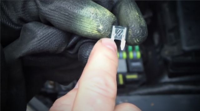 Осмотреть предохранитель: линия должна быть четкой, без обрывов, а контакты чистые и не подгоревшие.