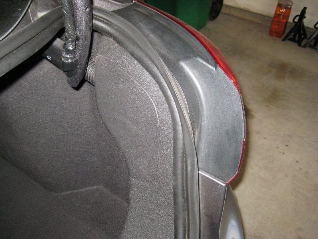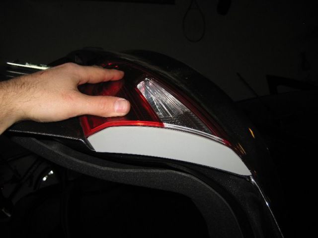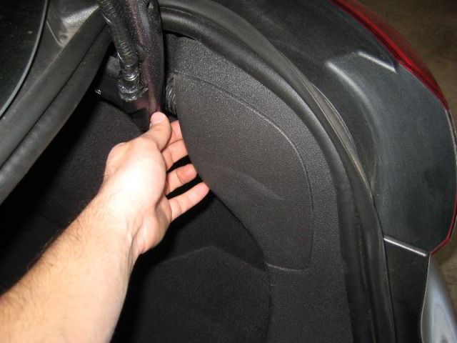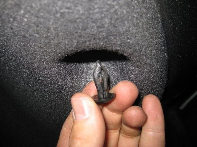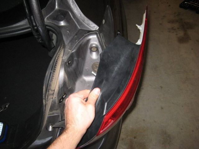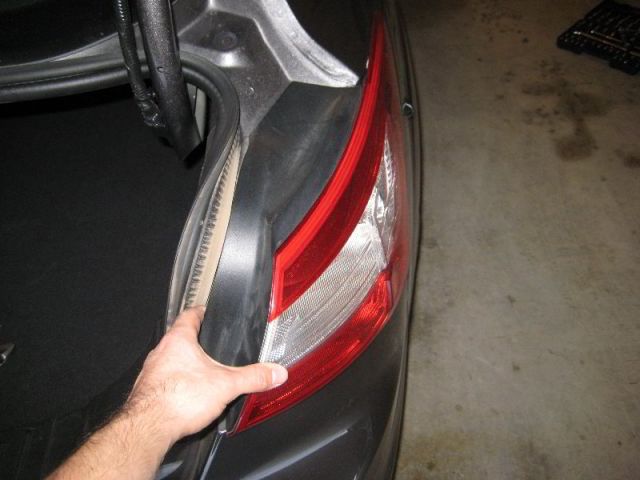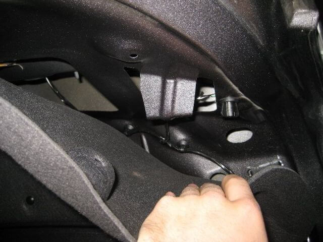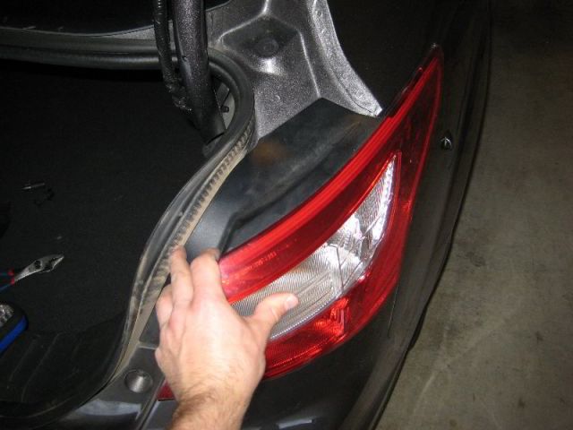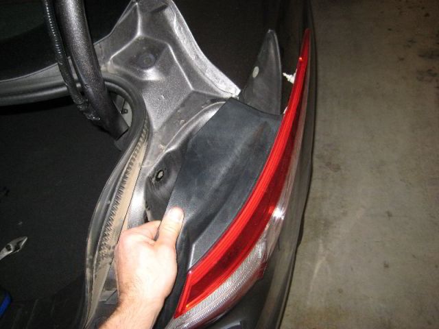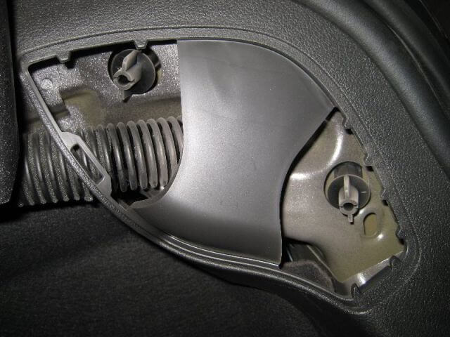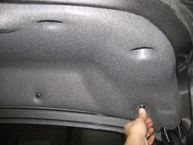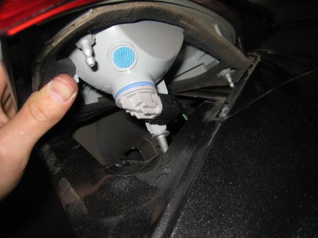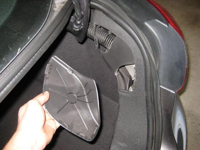Как уже говорилось, для замены задних ламп сначала надо снять фонарь. Для этого следует открыть багажник и снять панель в углу. За панелью находится пара черных пластиковых винтов, которые можно открутить от руки.