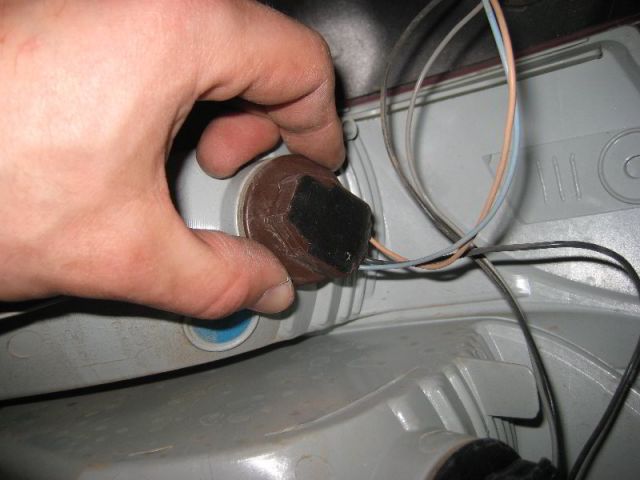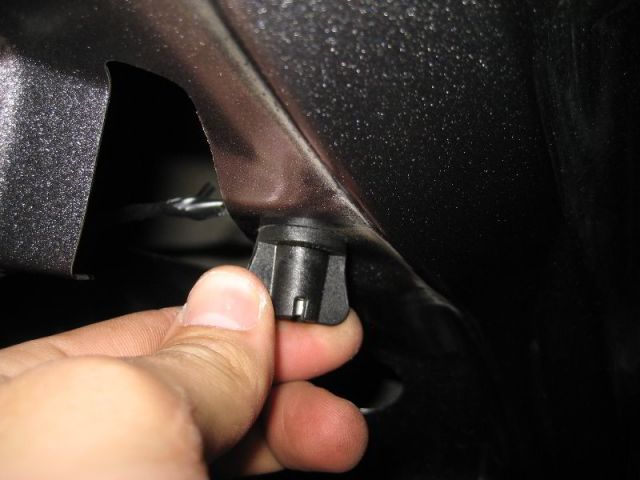 Снимите резиновую овальную крышку с фары, чтобы получить доступ для замены габаритной лампочки.