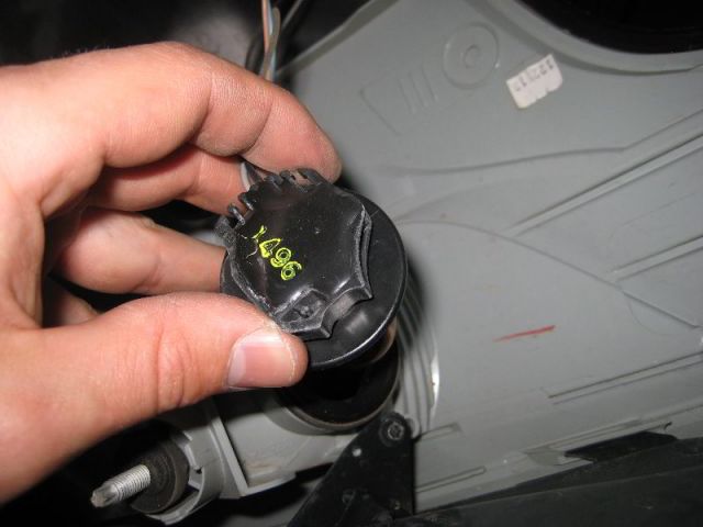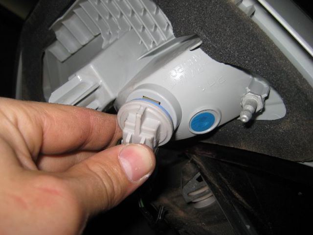 Вставьте лампу с разъёмом обратно в фару. Внимание. Сделать это нелегко.