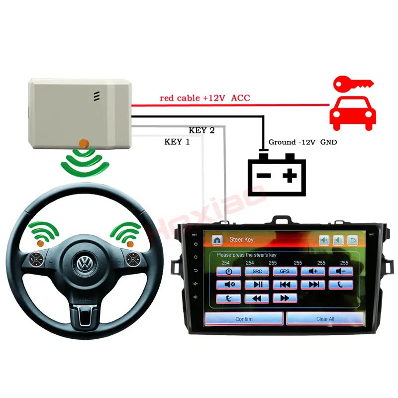 На магнитоле же для управления имеется три входа: “-” gnd, key 1, key 2.