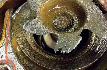 Среди признаков неисправности водяной помпы нужно отметить наличие деформации на валу. Он может оказаться при осмотре изогнутым или полностью разрушенным. Если он переломлен, значит, перегрузка была внезапной. Также к подобным последствиям приводит нарушение равновесия.