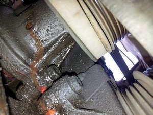 Еще нужно осмотреть место прилегания помпы к блоку двигателя. В идеале там не должно быть подтеков охлаждающей жидкости из дренажного отверстия. Однако если есть незначительные (именно незначительные !!!) подтеки, то помпу можно не менять, а временно попробовать избавиться от них при помощи замены уплотнителя и использования герметика.