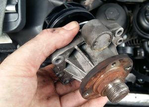 Если помпа новая, ее нужно снять и проверить правильность установки. Особенно важно обратить внимание на моменты затяжки. Если помпа уже старая, ее обязательно нужно заменить.