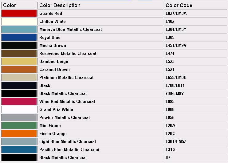 | ОБРАЗЕЦ | ЦВЕТ | MFG. | Код DuPont® | ГОД | ПРИМЕНЯТЬ |