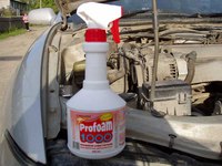 1) Распылите средство на поверхность, где есть загрязнения. Если это двигатель автомобиля, то разбрызгивайте на теплый (не горячий) двигатель.