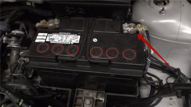 - Ставим авто на смотровую яму и обездвиживаем. Снимаем с двигателя пластиковые накладки, отсоединяем клемму с АКБ;