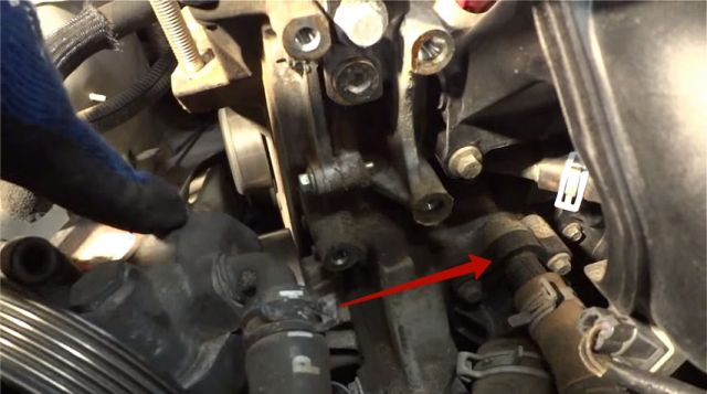 Термостат находится в пластиковом корпусе, который расположен в передней части блока цилиндров под генератором.