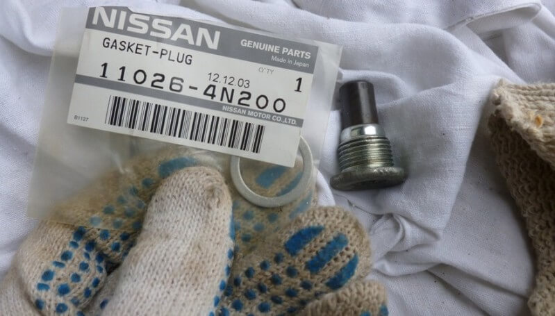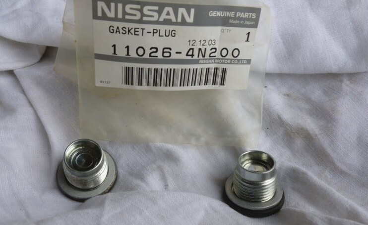 Под пробками что сливного, что заливного отверстия, рекомендуется поменять уплотнительные шайбы, кат. номер 11026-4N200.