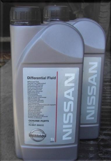 Чтобы произвести замену масла в дифференциалах, потребуется масло NISSAN Diffirential Fluid, оригинальный код KE907-99932. Будет достаточно и одной литровой банки но если сливать очень горячее и с чуть приподнятым передком, то возможно придется бежать и за еще одной, поскольку может войти 1,1-1,2 л.