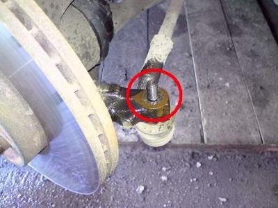 Срываем ступичный болт. Снимаем колесо, снимаем тормозные колодки, откручиваем скобу суппорта и подвешиваем его проволокой за пружину. Снимаем тормозной диск.
