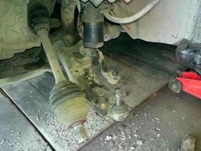 Откручиваем рулевой наконечник. Выбиваем или выпрессовываем съёмником наконечник.