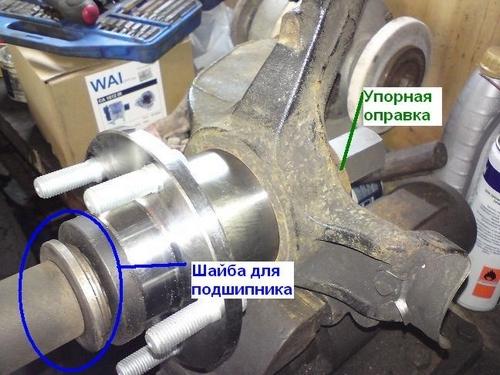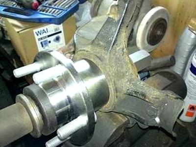 Чтобы установить новую ступицу ее нужно запрессовать в кулак. Для того, чтобы не давить на внутреннюю обойму нужны оправки, на фокус клубе есть чертежи для изготовления. Также там находил информацию о использовании пары стертых тормозных дисков, один из которых был распилен пополам. Так лучше не делать, потому что диски чугунные и могут разлететься на мелкие кусочки. Это опасно.
