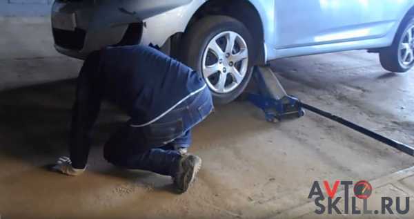 - Снимается переднее колесо автомобиля с той стороны, где будут произведены ремонтные работы;