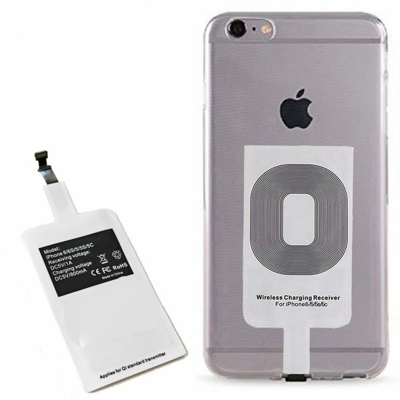 Обеспечивает беспроводную зарядку всех моделей iPhone с портом Lightning. Если вы хотите наслаждаться QI-зарядкой на своем iPhone, этот набор для беспроводной зарядки сделает эту работу. Он содержит передатчик (зарядное устройство) и приемник для подключения к порту молнии вашего iPhone (совместимые модели: 5,5C, 5S, 6,6 Plus, 6S, 6S Plus, SE, 7,7 Plus).