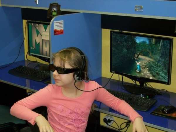 Далее, просто поднимаемся на 3-й этаж и, буквально пройдя 10 метров, видим искомое — первый в России 3D компьютерный клуб V-Max. То, что это он, было понятно сразу, даже если бы не было видно фирменных плакатов — за компьютерами куча народу в «инопланетянских» очках, а изображение, почти на всех мониторах, двоится.